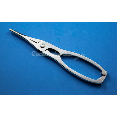 Tijera rompe mariscos con tres sistemas de corte, mediante tijeras moldeadas en la punta, y dos rompedores para patas medianas y gruesas delante y detrás del eje realizado en acero puro inoxidable en España. Unas tijeras de marisco válidas para abrir piñonesDETALLE DEL PRODUCTOFabricado en:España&nb..