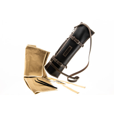 Manta para guardar y transportar cuchillos de cordura con capacidad para ocho cuchillos cosida realizada a mano con doble velcro reforzado y solapa de piel interior para proteger las puntas de los cuchillos y labio lateral.DETALLE DEL PRODUCTOFabricado en:España Hecha de:Cordura negra con solap..
