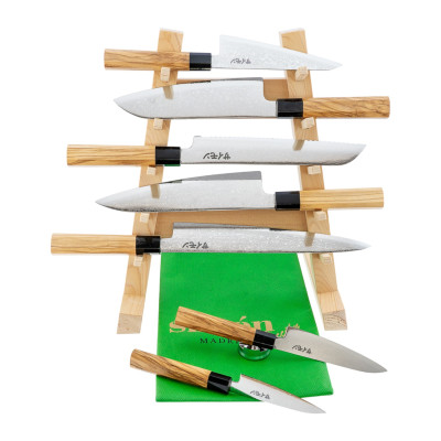 CUCHILLO PUNTILLA SIMÓN DJ OLIVOCuchillo de cocina modelo Petty ideal para pelar alimentos como fruta o vegetales realizado de acero templado en damasco de 67 capas pulido a mano con mango de madera de olivo con virola de cuerno de búfalo y filo cerámico a mano.CUCHILLO PUNTILLA SIMÓN DAMASCUS JAPAN..
