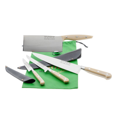 de la serie de cuchillos de cocina Simon con mango de micarta de lino con funda
